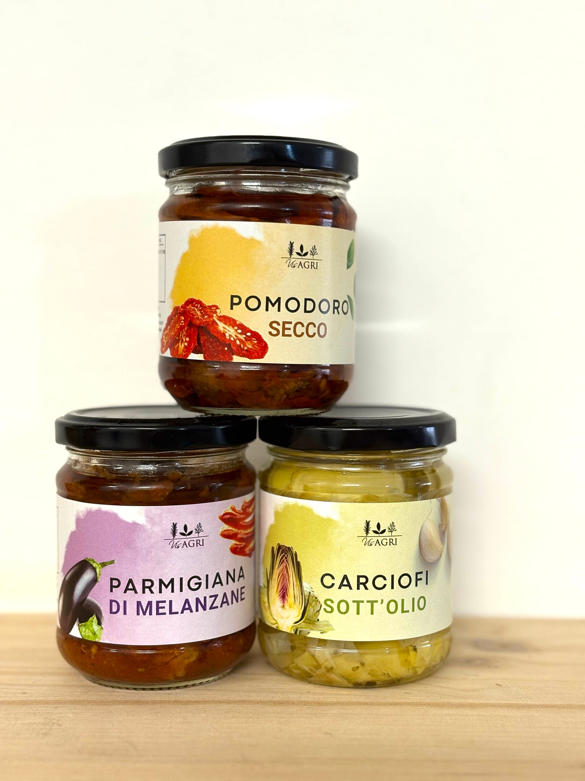 Ogni vasetto racchiude il gusto vero della Sicilia, preparato con ingredienti semplici e lavorazione artigianale. Questo tris è pensato per chi vuole portare in tavola qualcosa di buono, semplice ma allo stesso tempo speciale.