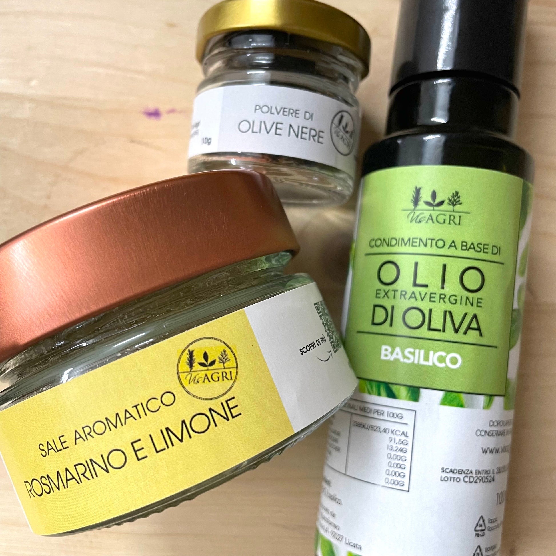 Olio Extravergine di Oliva al Basilico (100 ml): un'armoniosa fusione tra l'olio extravergine di oliva di alta qualità e l'intenso aroma del basilico fresco. Perfetto per condire insalate, verdure grigliate o semplicemente per un tocco di gusto in più su qualsiasi piatto.